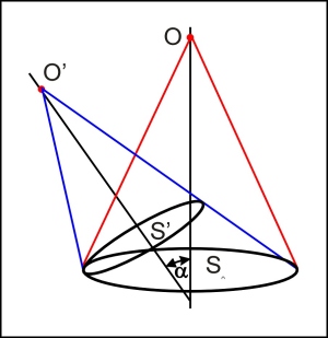 ~ Но при косом падении, световой поток, попадающий в объектив, должен пройти через площадку S', перпендикулярную к направлению потока: Q'