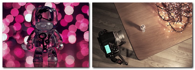 Объект переднего плана находится слишком близко к объективу. Творческий замысел не ясен. Что и для чего фотографировалось? Нарушены условия пространственного размещения объектов переднего и заднего плана. Для подсветки использована одна настольная лампа, установленная позади объекта съемки. Соотношение между размером отверстия в насадке и диафрагмой выбрано неправильно. Хорошо видно, что объектив оснащен семилепестковой диафрагмой, поскольку она, а не отверстие в насадке, определяет форму точечных источников (бликов). Рисунок 14